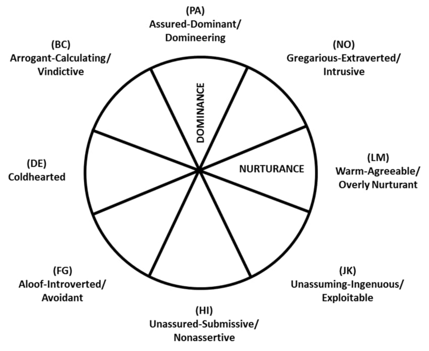 Created by Leary, T. (1957), the IPC as we’ll call it is my favorite circle. It neatly describes all of personality, traits, disorders, weaknesses, strengths, movement, etc. in one diagram.